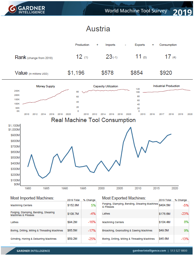 - Country ranking of Top 20 machine tool producers, consumers, importers and exporters